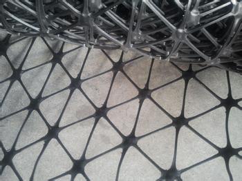 三向塑料土工格柵是用高分子聚合物三向拉伸而形成的穩定的三角形結構。該材料在三個方向都具有很高的拉伸強度,這種結構極大的增強了土工格柵對粒料的約束和嵌鎖,從而形成了一種性能更好的加強復合體。