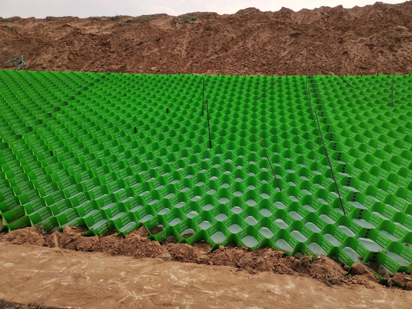 巢室邊坡穩定與保護系統能隔離、加強并束縛坡面上方土層及填料,從而控制由水力和重力造成的坡體向下運動和滑移。